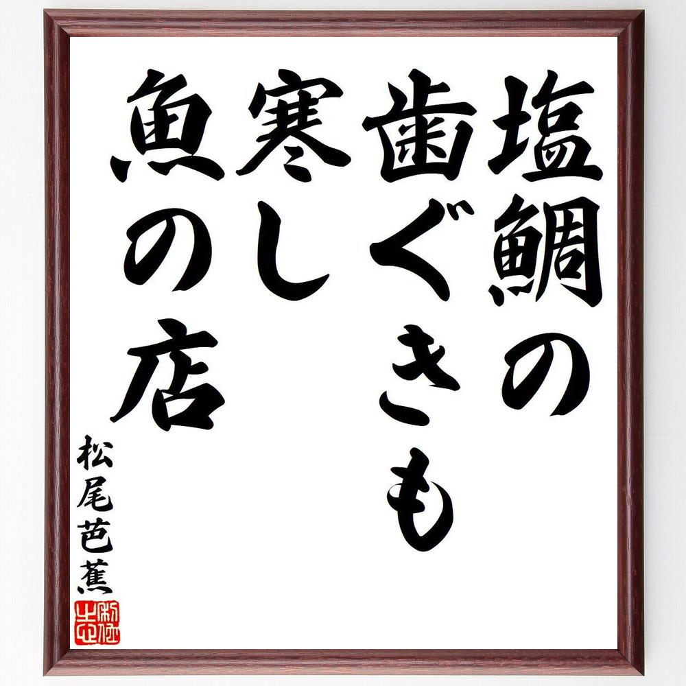 松尾芭蕉の短歌・俳句「塩鯛の、歯ぐきも寒し、魚の店」手書き書道色紙額/受注後の毛筆直筆
