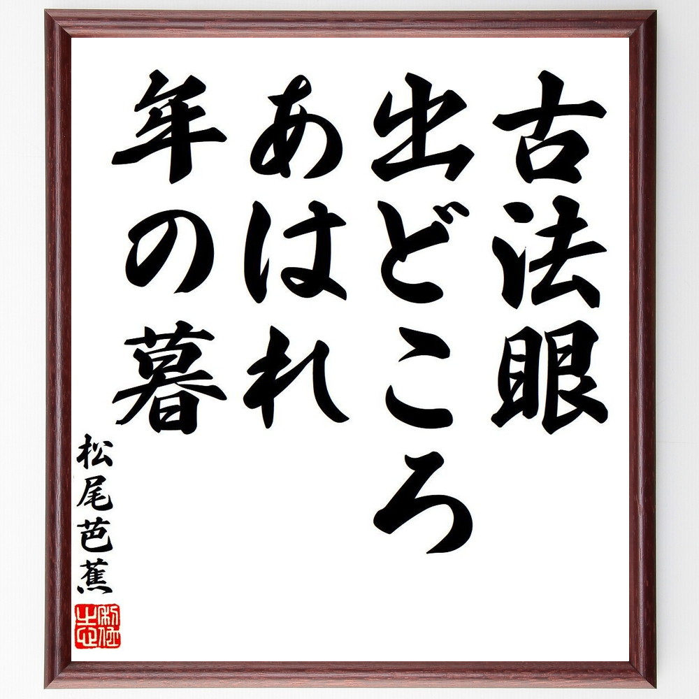 松尾芭蕉の短歌・俳句「古法眼、出どころあはれ、年の暮」手書き書道色紙額/受注後の毛筆直筆
