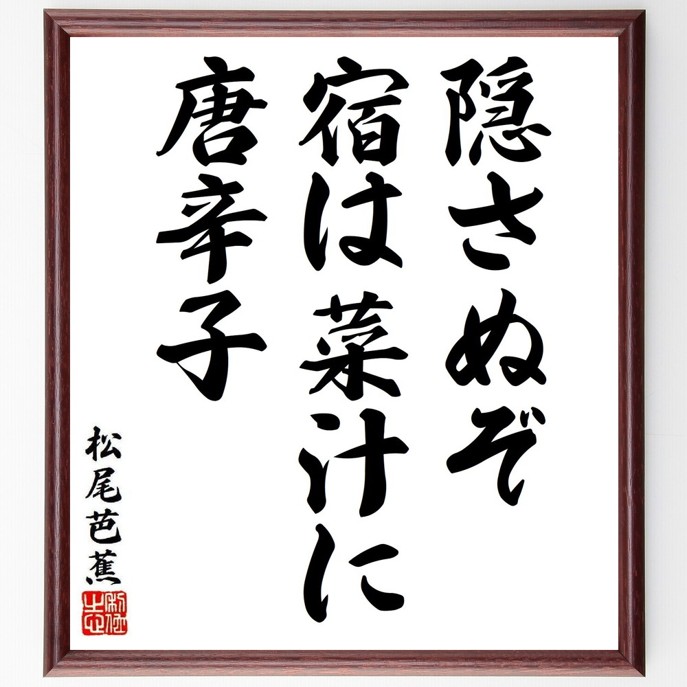 松尾芭蕉の名言「隠さぬぞ、宿は菜汁に、唐辛子」手書き書道色紙額/受注後の毛筆直筆