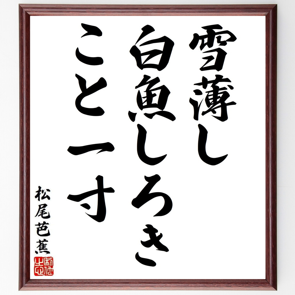 松尾芭蕉の短歌・俳句「雪薄し、白魚しろき、こと一寸」手書き書道色紙額/受注後の毛筆直筆