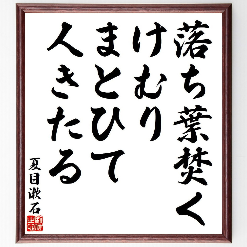 夏目漱石の短歌・俳句「落ち葉焚く、けむりまとひて、人きたる」手書き書道色紙額/受注後の毛筆直筆