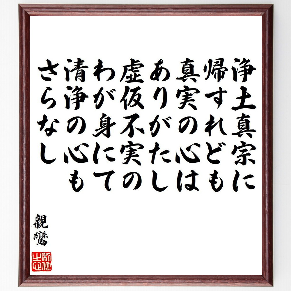 親鸞の名言「浄土真宗に帰すれども、真実の心はありがたし、虚仮不実のわが身にて、清浄の心もさらなし」手書き書道色紙額/受注後の毛筆直筆
