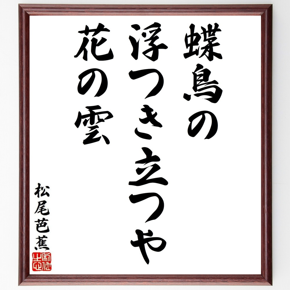 松尾芭蕉の短歌・俳句「蝶鳥の、浮つき立つや、花の雲」手書き書道色紙額/受注後の毛筆直筆