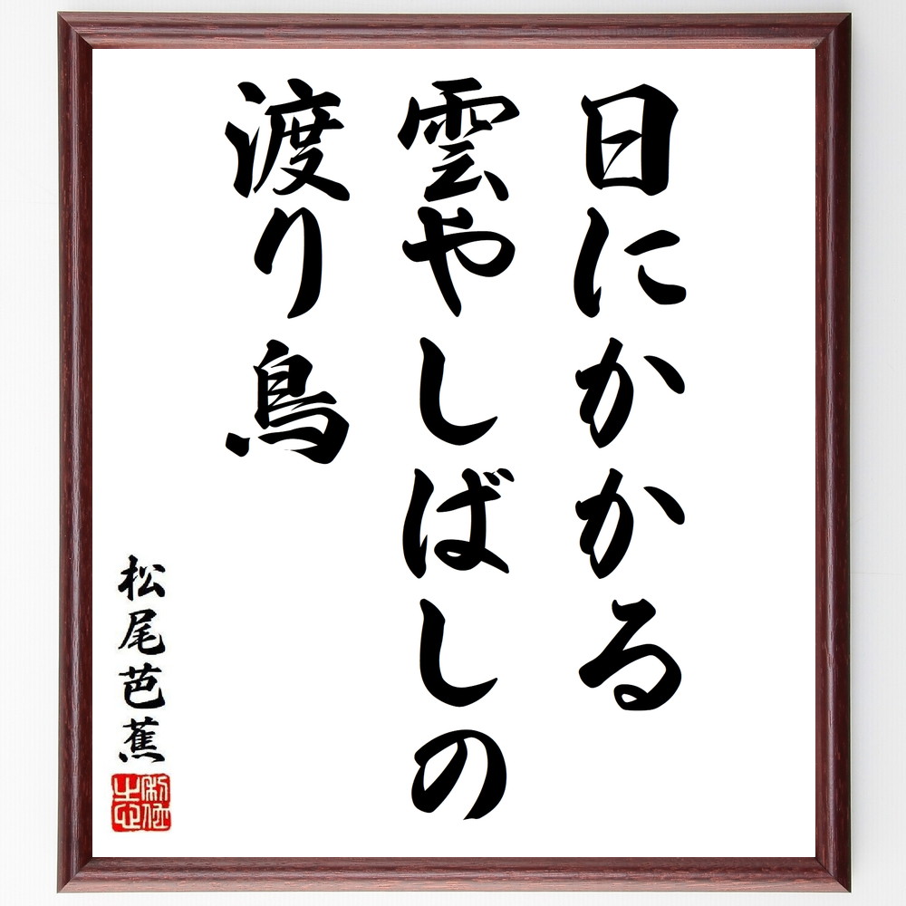 松尾芭蕉の短歌・俳句「日にかかる、雲やしばしの、渡り鳥」手書き書道色紙額/受注後の毛筆直筆