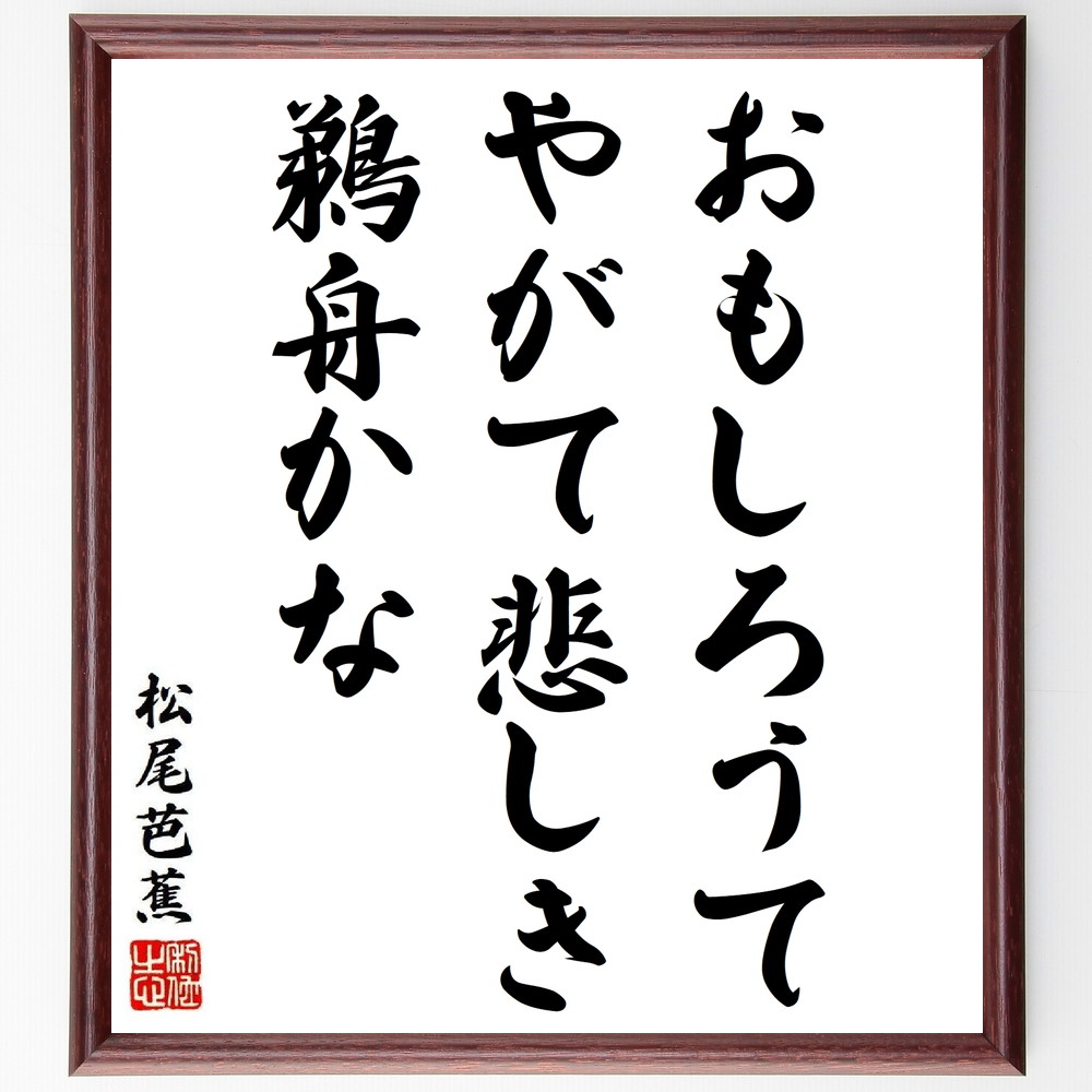 松尾芭蕉の短歌・俳句「おもしろうて、やがて悲しき、鵜舟かな」手書き書道色紙額/受注後の毛筆直筆