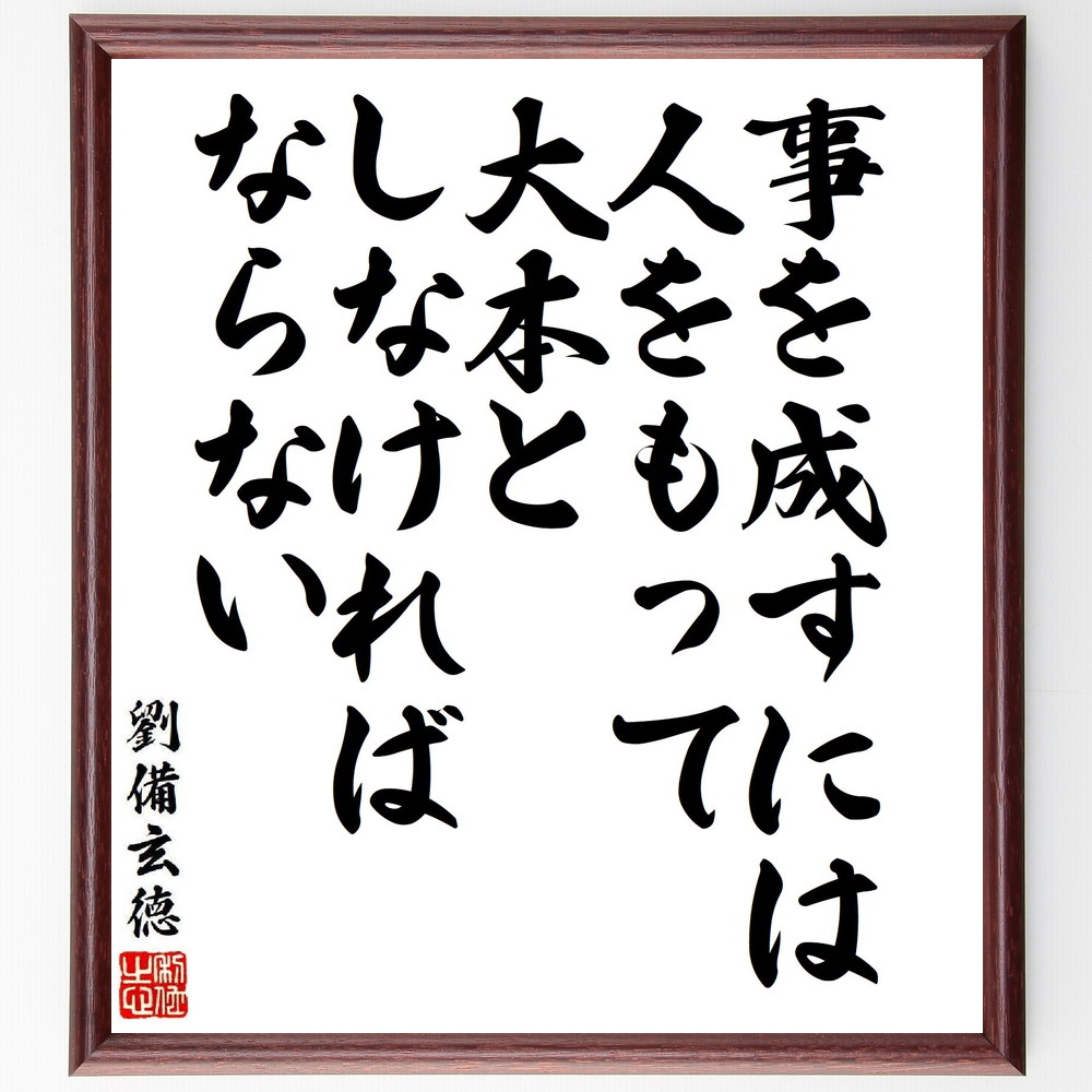 劉備玄徳の名言「事を成すには、人をもって大本としなければならない」手書き書道色紙額/受注後の毛筆直筆