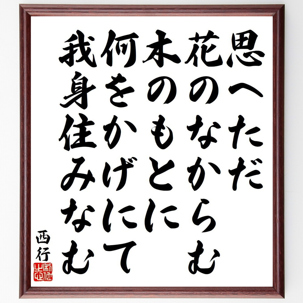 西行の短歌・俳句「思へただ、花のなからむ、木のもとに、何をかげにて、我身住みなむ」手書き書道色紙額/受注後の毛筆直筆