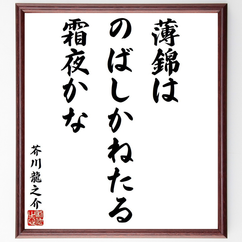 芥川龍之介の名言「薄錦は、のばしかねたる、霜夜かな」手書き書道色紙額/受注後の毛筆直筆