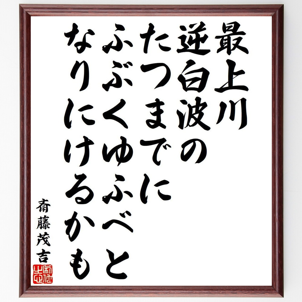 斎藤茂吉の名言「最上川、逆白波のたつまでに、ふぶくゆふべと、なりにけるかも」手書き書道色紙額/受注後の毛筆直筆