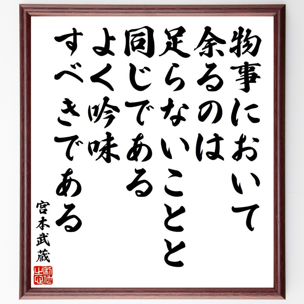宮本武蔵の名言「物事において余るのは足らないことと同じである、よく吟味すべきである」手書き書道色紙額/受注後の毛筆直筆