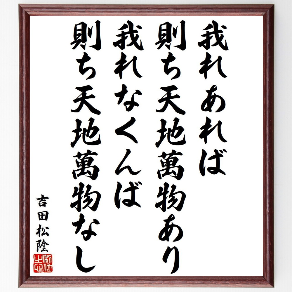 吉田松陰の名言「我れあれば、則ち天地萬物あり、我れなくんば、則ち天地萬物なし」手書き書道色紙額/受注後の毛筆直筆