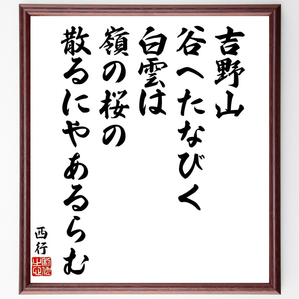 西行の短歌・俳句「吉野山、谷へたなびく、白雲は、嶺の桜の、散るにやあるらむ」手書き書道色紙額/受注後の毛筆直筆