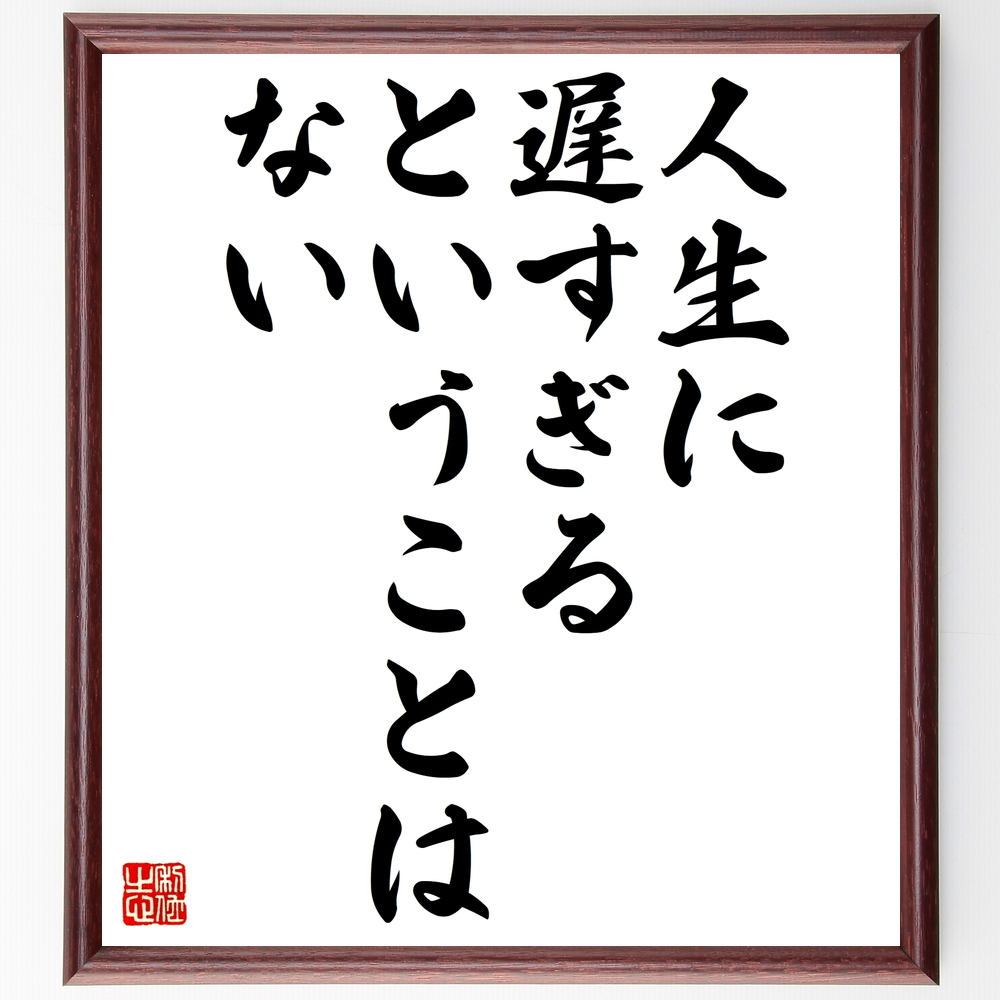 名言「人生に遅すぎるということはない」手書き書道色紙額/受注後の毛筆直筆