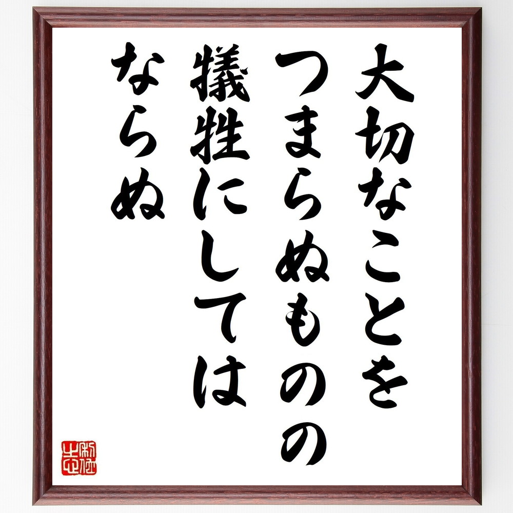 ゲーテの名言「大切なことを、つまらぬものの犠牲にしてはならぬ」手書き書道色紙額/受注後の毛筆直筆