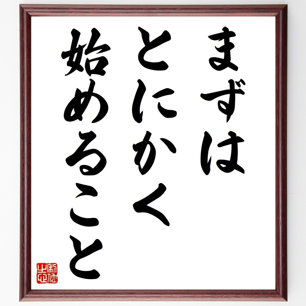 名言「まずはとにかく始めること」手書き書道色紙額/受注後の毛筆直筆