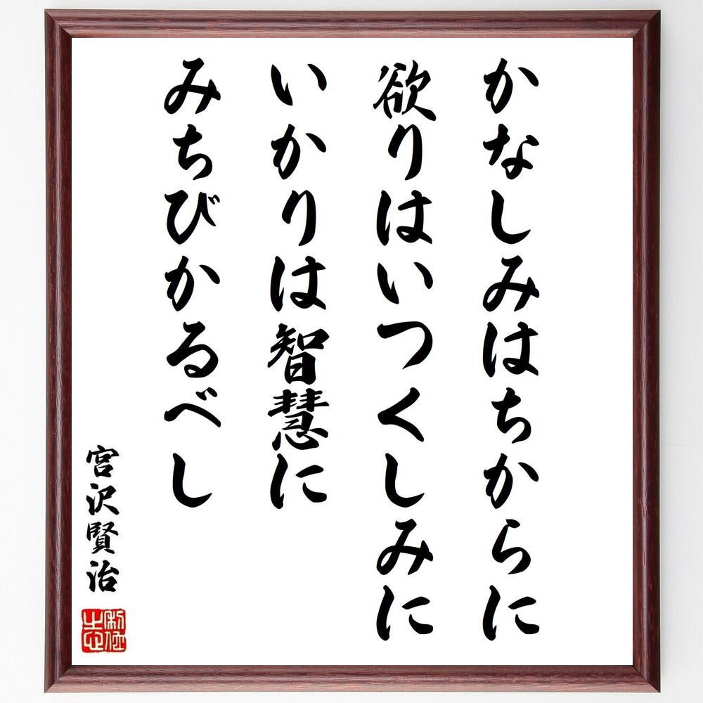 宮沢賢治の名言「かなしみはちからに、欲りはいつくしみに、いかりは智慧にみちびかるべし」手書き書道色紙額/受注後の毛筆直筆