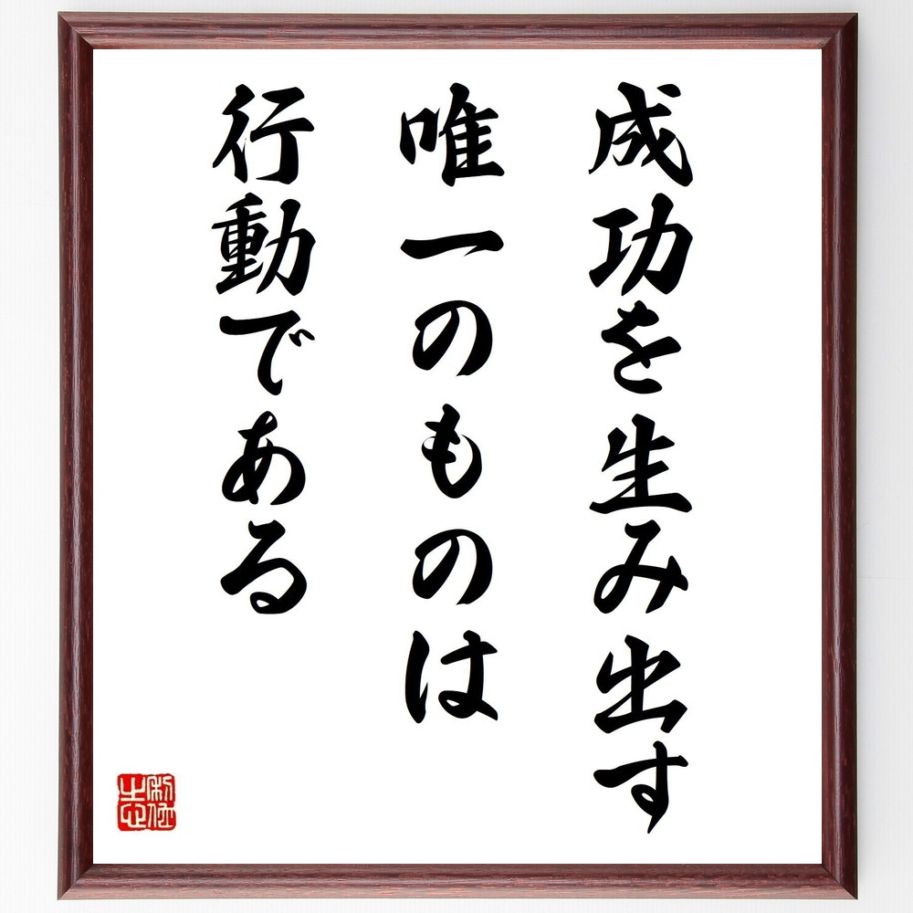 名言「成功を生み出す唯一のものは行動である」手書き書道色紙額/受注後の毛筆直筆