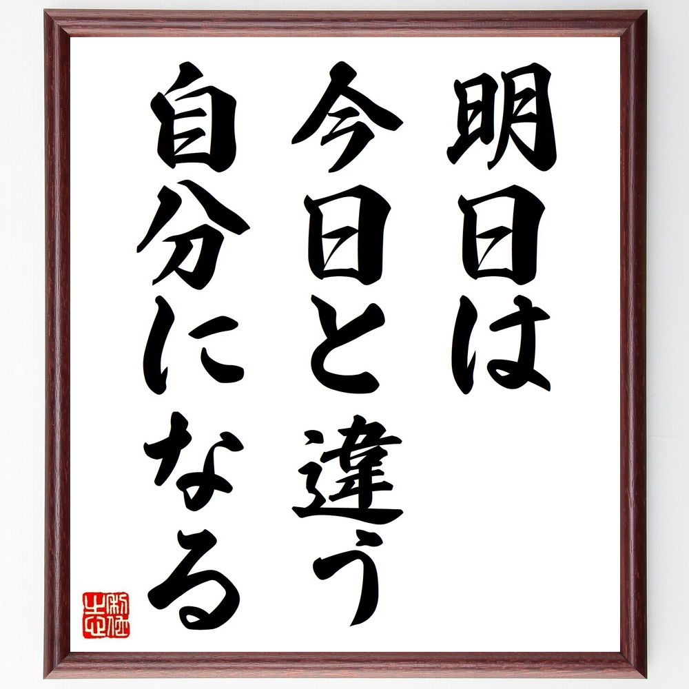 名言「明日は今日と違う自分になる」手書き書道色紙額/受注後の毛筆直筆