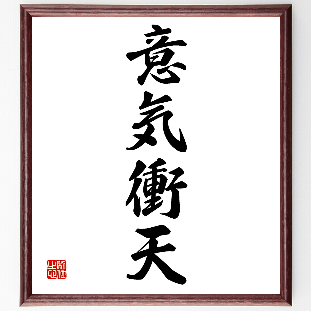 四字熟語「意気衝天」手書き書道色紙額/受注後の毛筆直筆