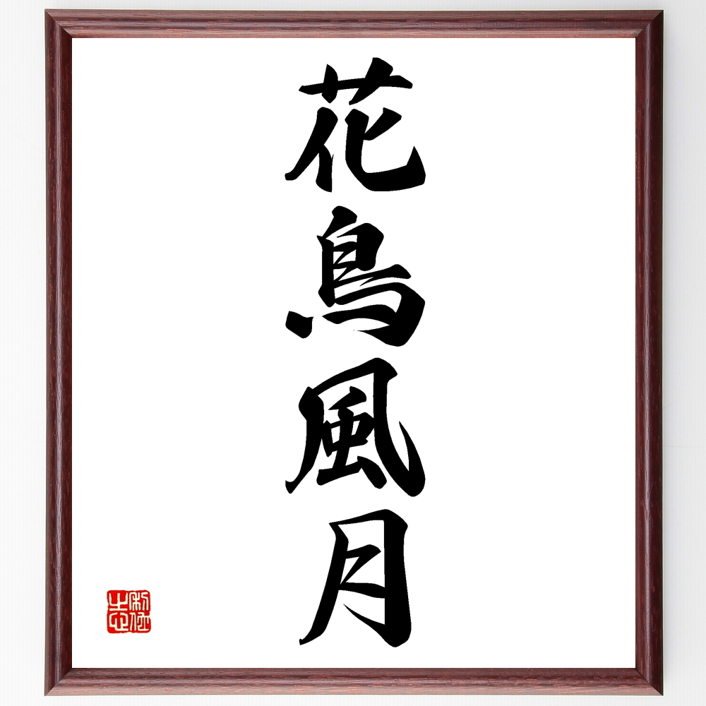 四字熟語「花鳥風月」手書き書道色紙額/受注後の毛筆直筆