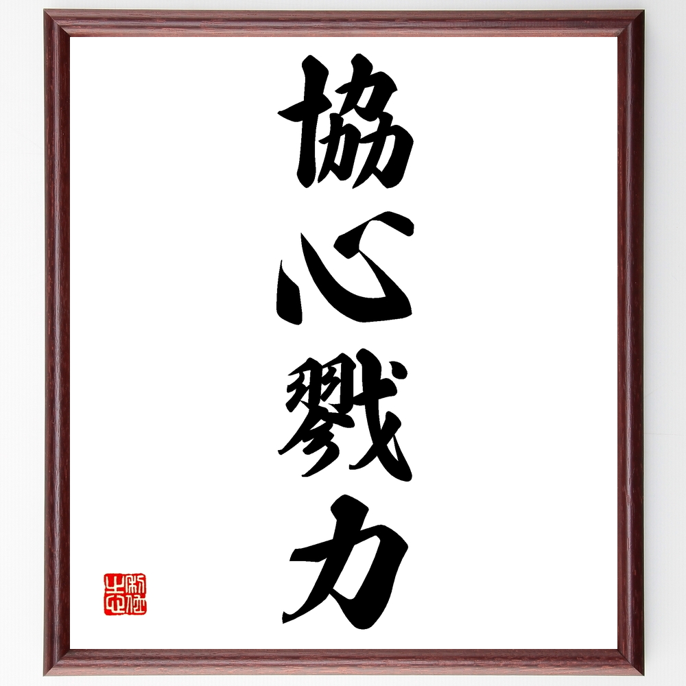 四字熟語「協心戮力」手書き書道色紙額/受注後の毛筆直筆
