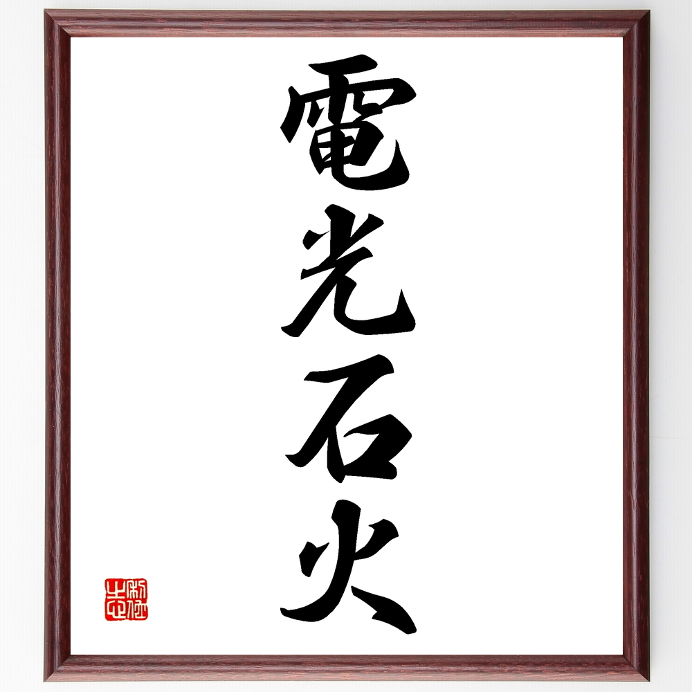 四字熟語「電光石火」手書き書道色紙額/受注後の毛筆直筆