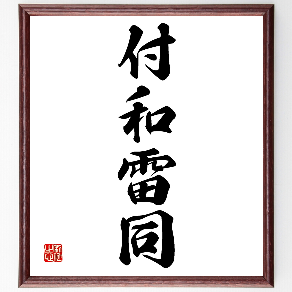 四字熟語「付和雷同」手書き書道色紙額/受注後の毛筆直筆