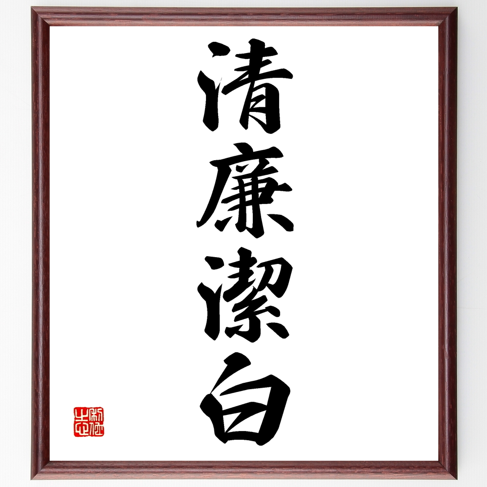 四字熟語「清廉潔白」手書き書道色紙額/受注後の毛筆直筆