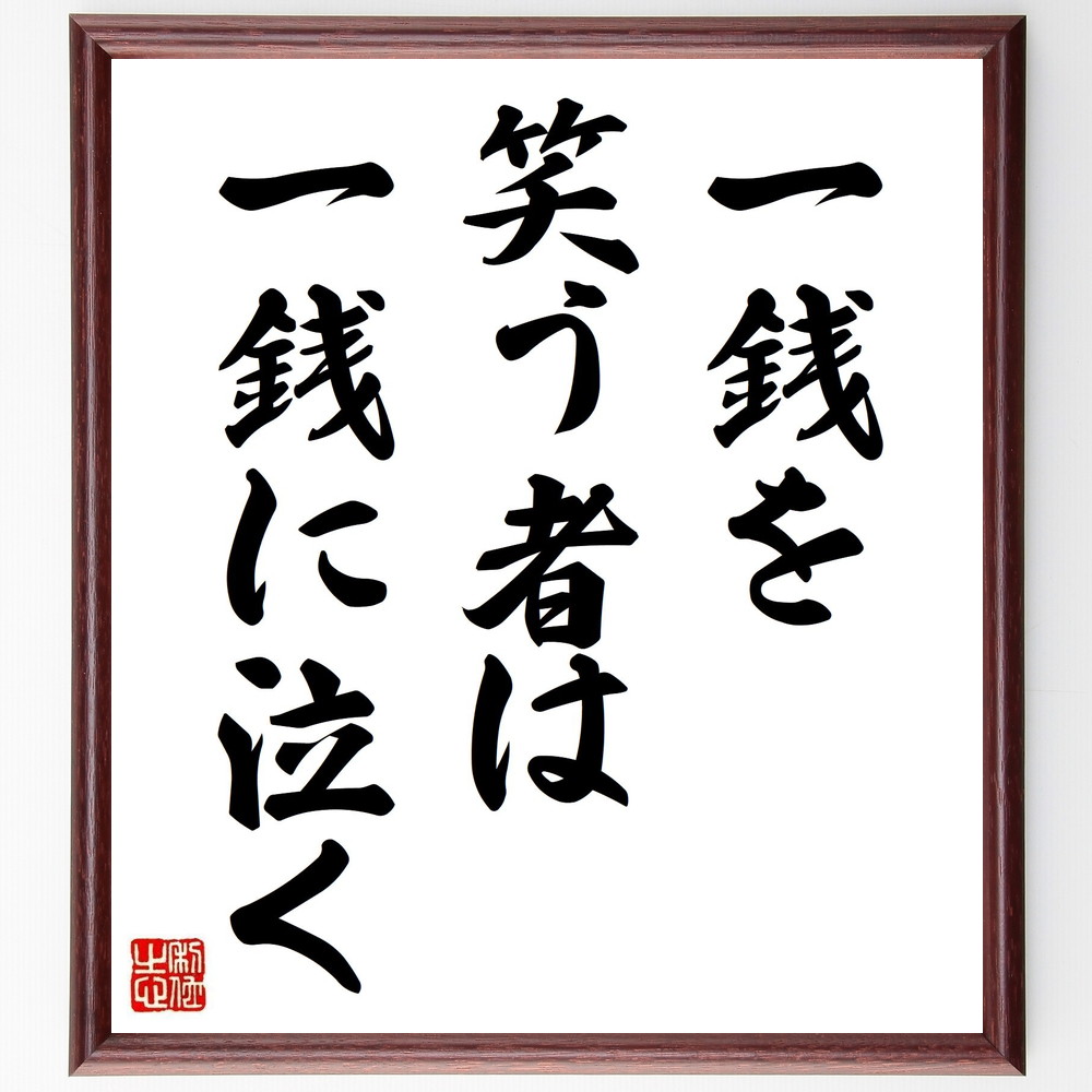 名言「一銭を笑う者は一銭に泣く」手書き書道色紙額/受注後の毛筆直筆