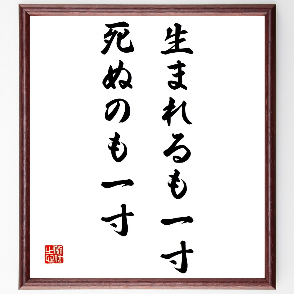 名言「生まれるも一寸、死ぬのも一寸」手書き書道色紙額/受注後の毛筆直筆
