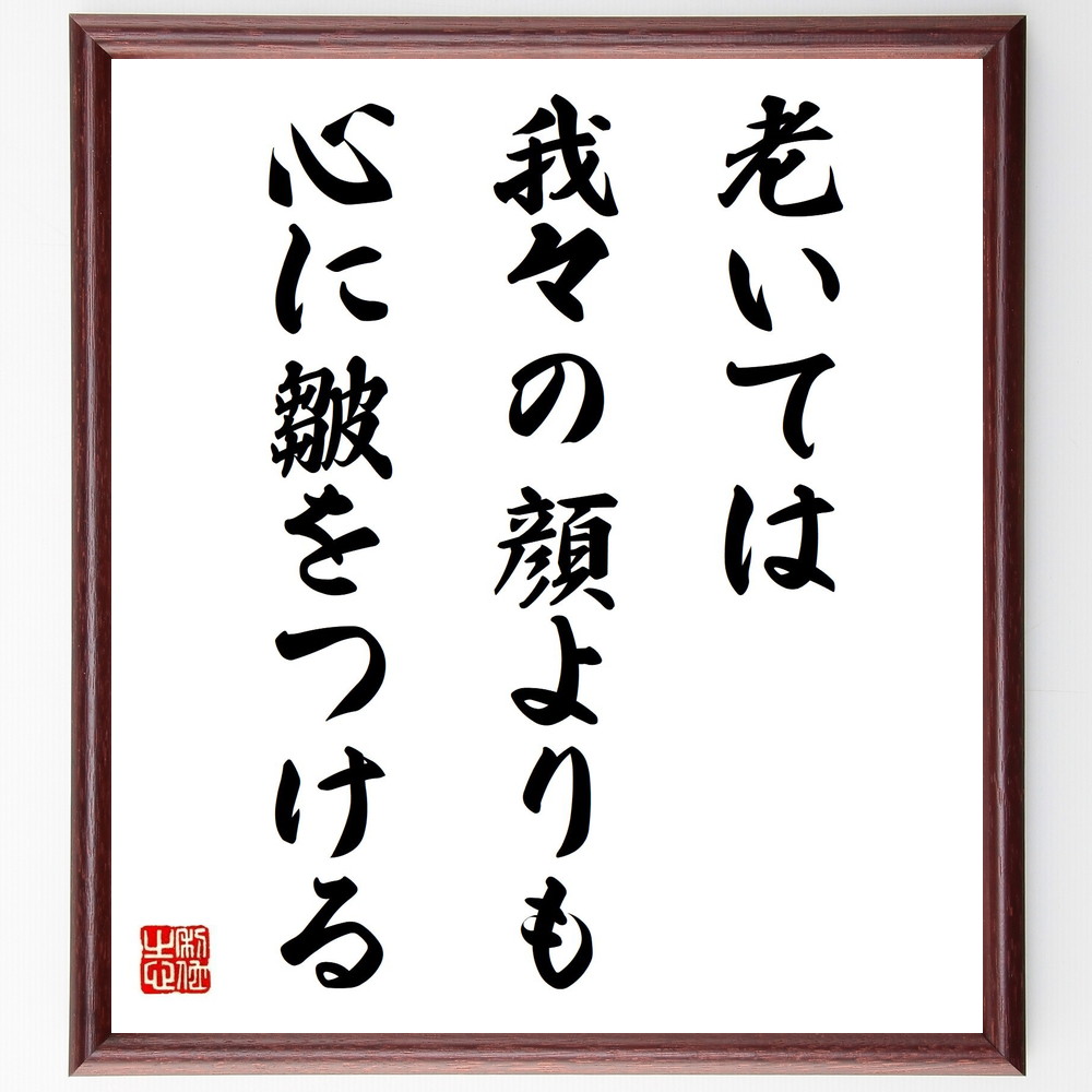 モンテーニュの名言「老いては我々の顔よりも、心に皺をつける」手書き書道色紙額/受注後の毛筆直筆