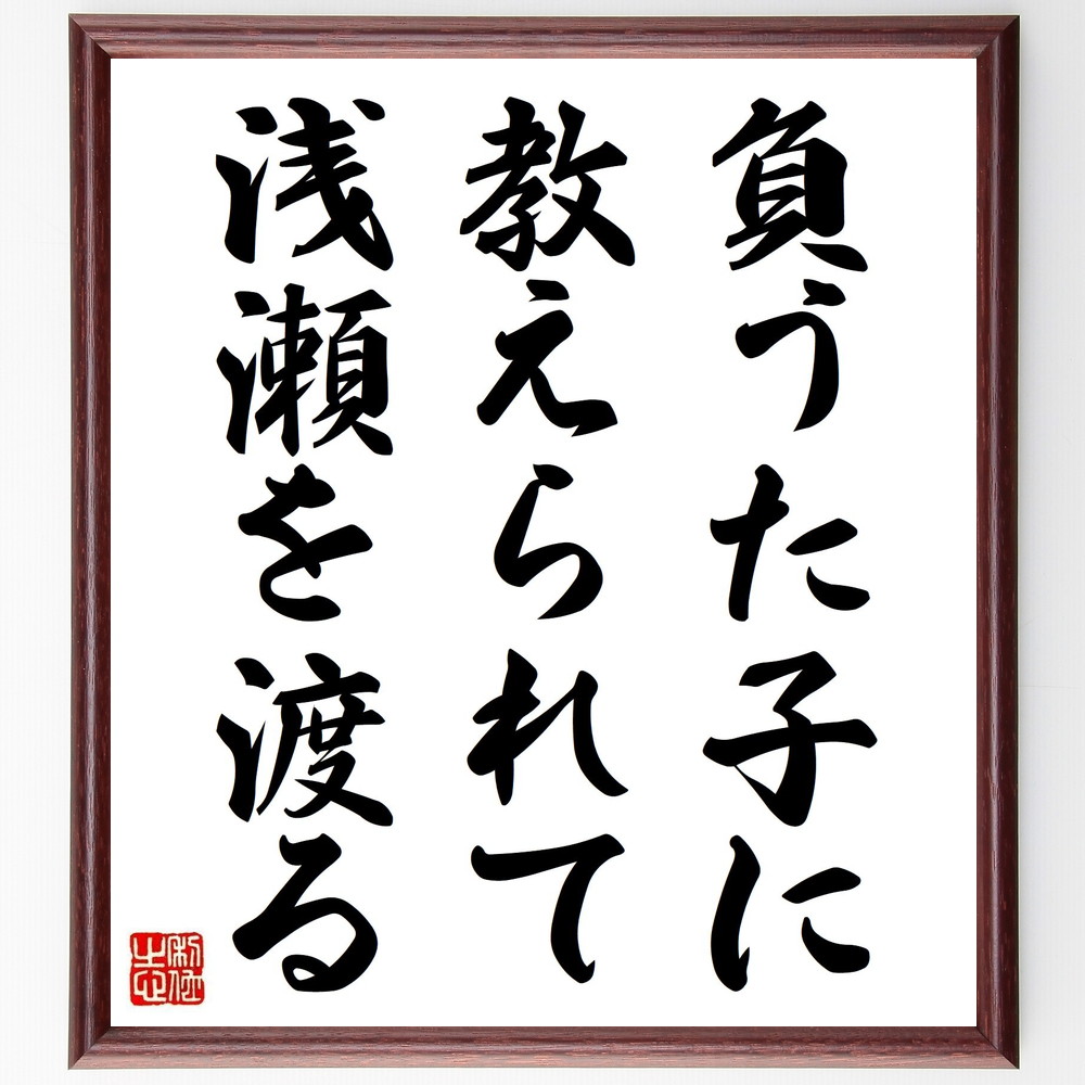 名言「負うた子に教えられて浅瀬を渡る」手書き書道色紙額/受注後の毛筆直筆