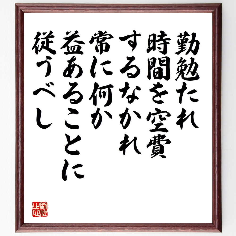 ベンジャミン・フランクリンの名言「勤勉たれ、時間を空費するなかれ、常に何か益あることに従うべし」手書き書道色紙額/受注後の毛筆直筆