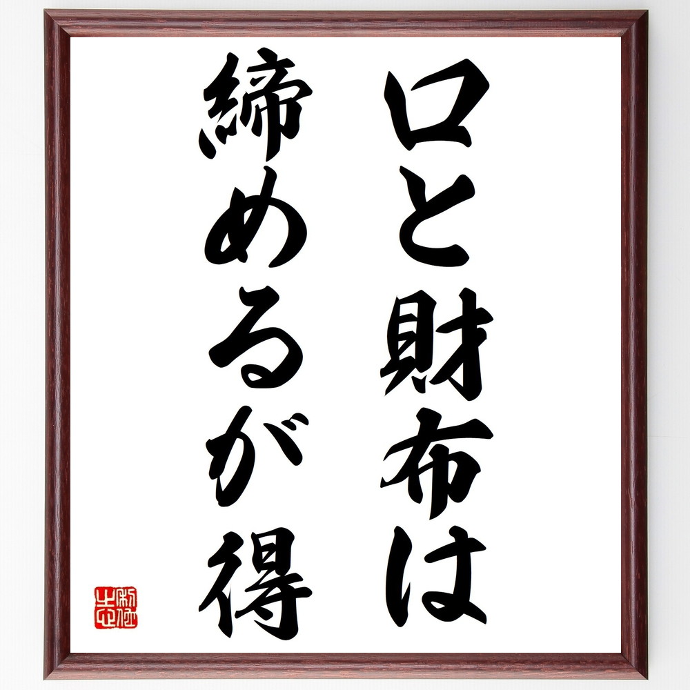 名言「口と財布は締めるが得」手書き書道色紙額/受注後の毛筆直筆