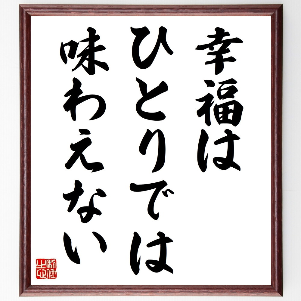 名言「幸福はひとりでは味わえない」手書き書道色紙額/受注後の毛筆直筆
