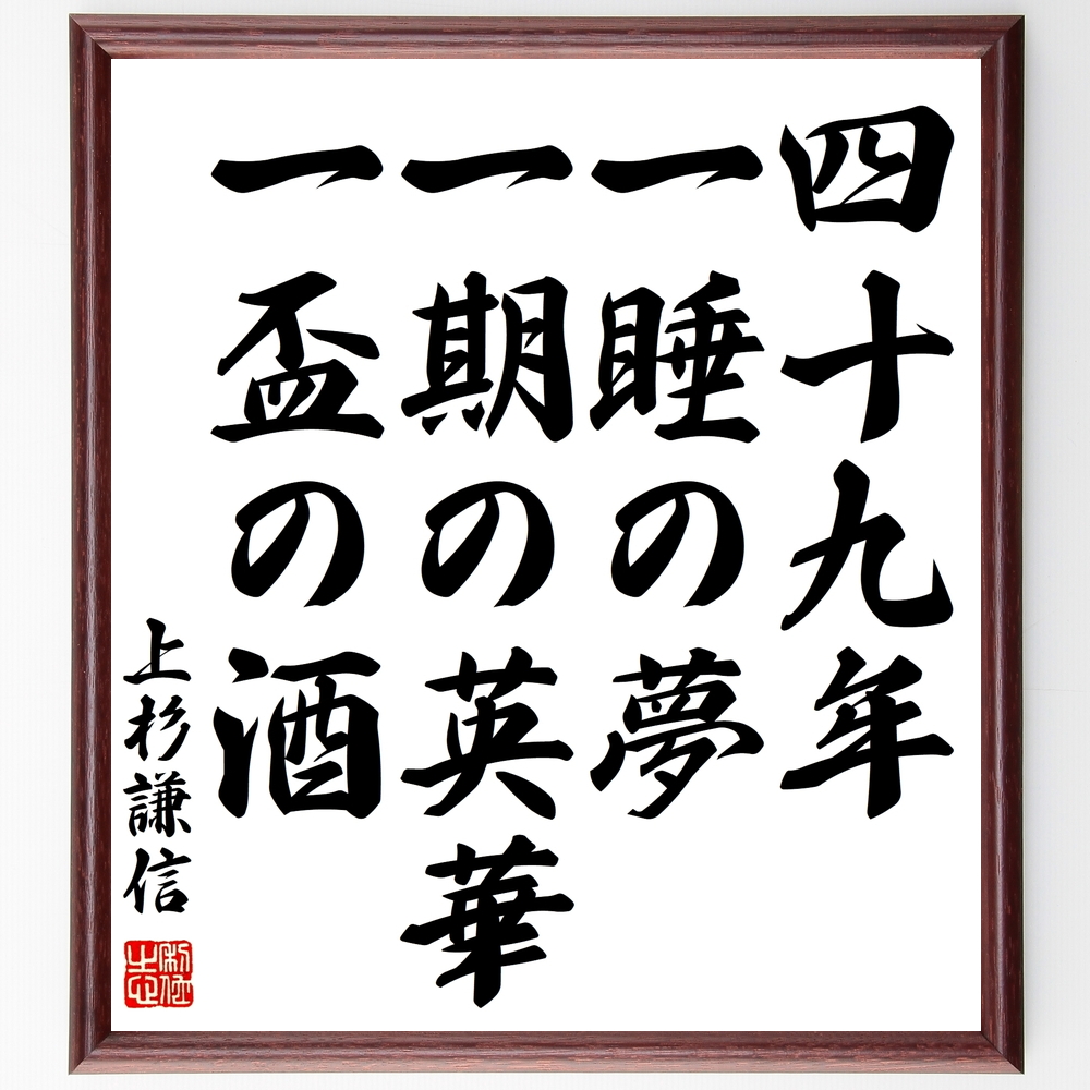 上杉謙信の名言「四十九年、一睡の夢、一期の英華、一盃の酒」手書き書道色紙額/受注後の毛筆直筆