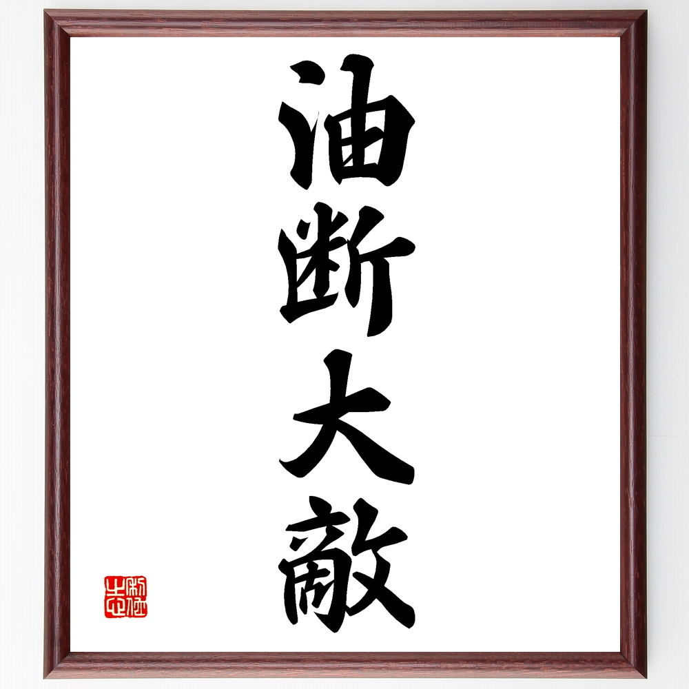 四字熟語「油断大敵」手書き書道色紙額/受注後の毛筆直筆
