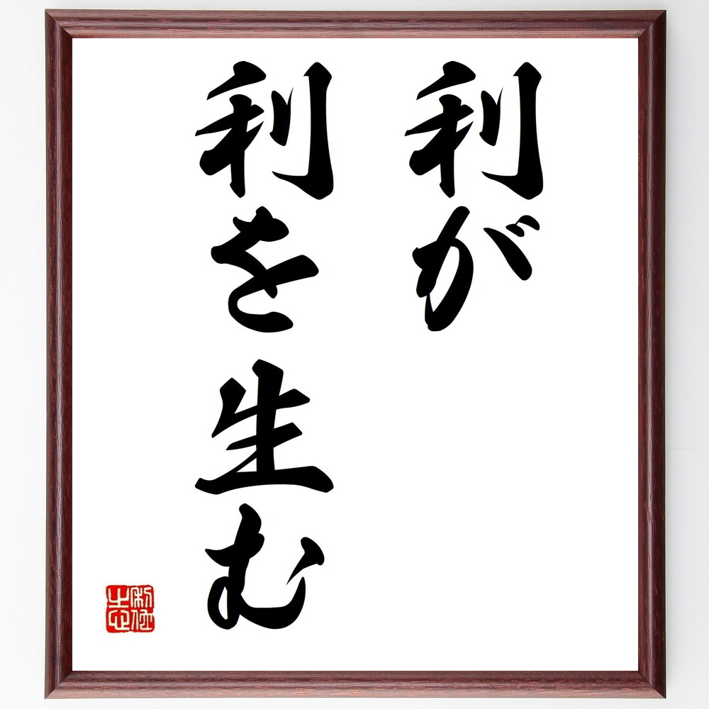 名言「利が利を生む」手書き書道色紙額/受注後の毛筆直筆