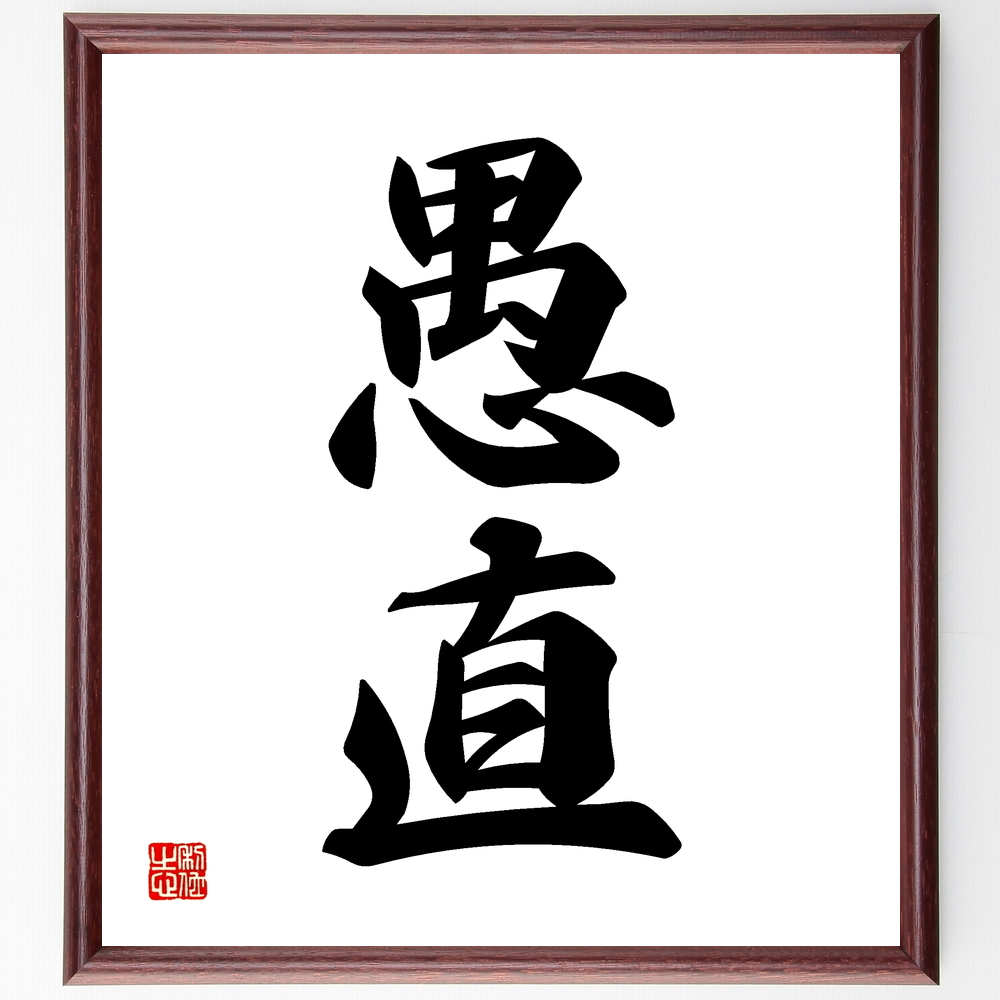 二字熟語「愚直」手書き書道色紙額/受注後の毛筆直筆