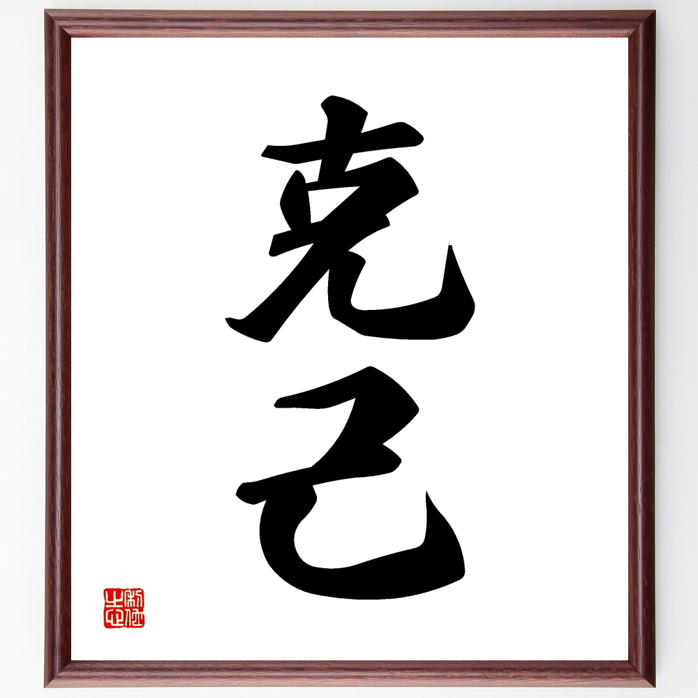 二字熟語「克己」手書き書道色紙額/受注後の毛筆直筆