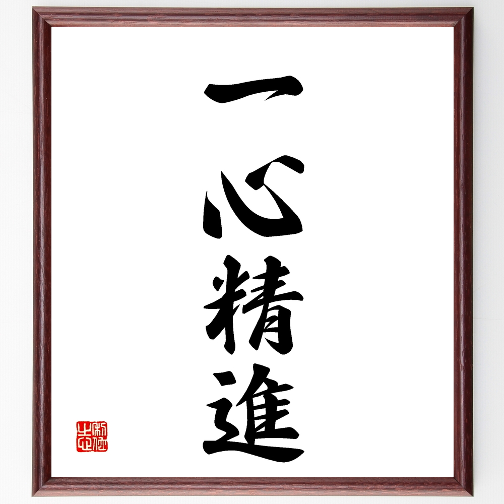 四字熟語「一心精進」手書き書道色紙額/受注後の毛筆直筆