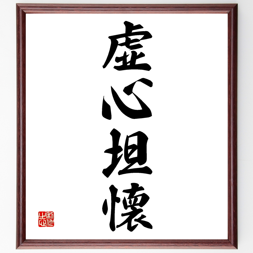 四字熟語「虚心坦懐」手書き書道色紙額/受注後の毛筆直筆
