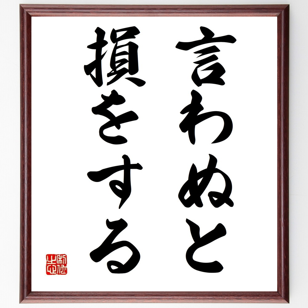 名言「言わぬと損をする」手書き書道色紙額/受注後の毛筆直筆