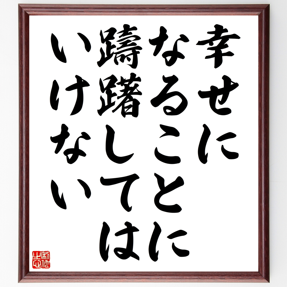 名言「幸せになることに躊躇してはいけない」手書き書道色紙額/受注後の毛筆直筆