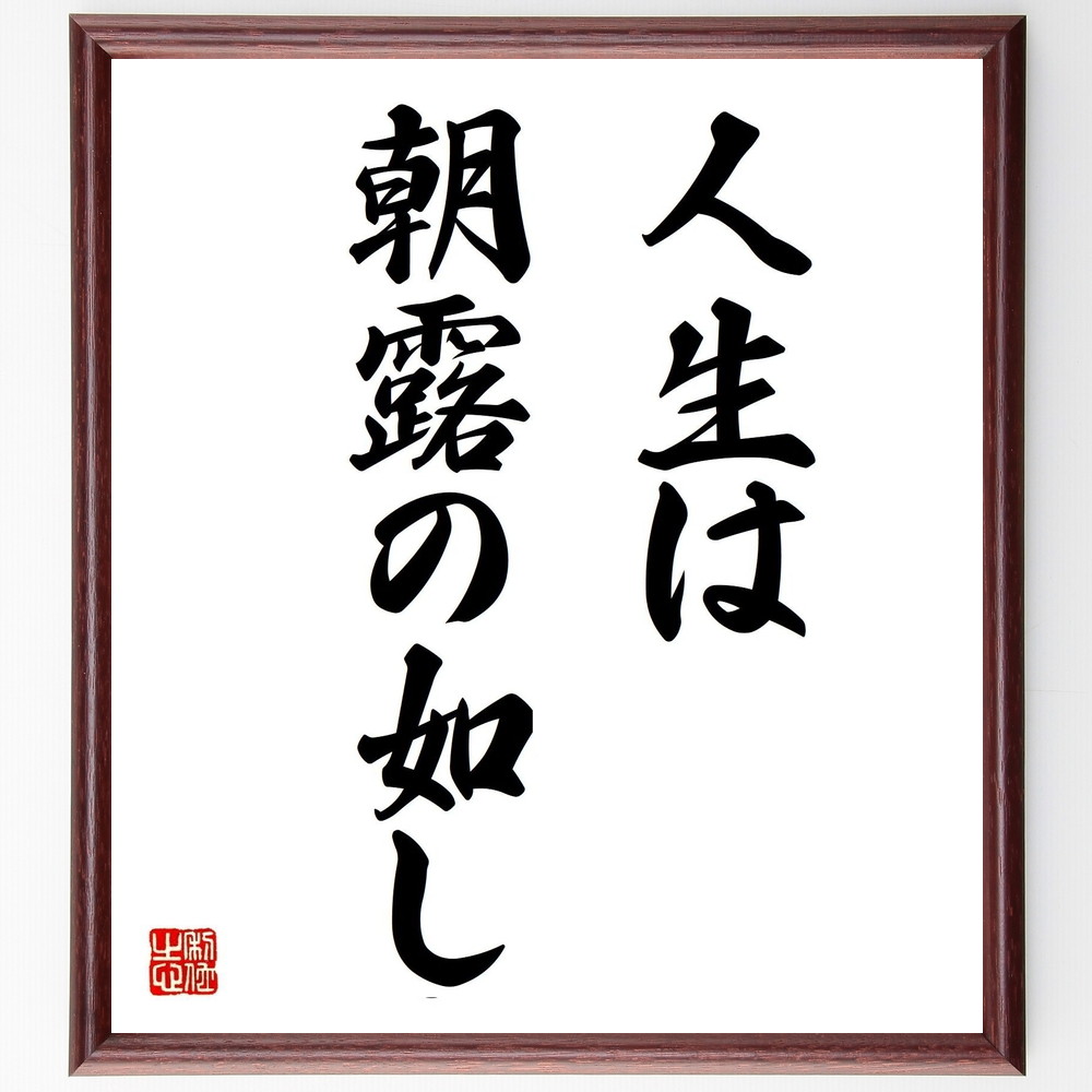 名言「人生は朝露の如し」手書き書道色紙額/受注後の毛筆直筆