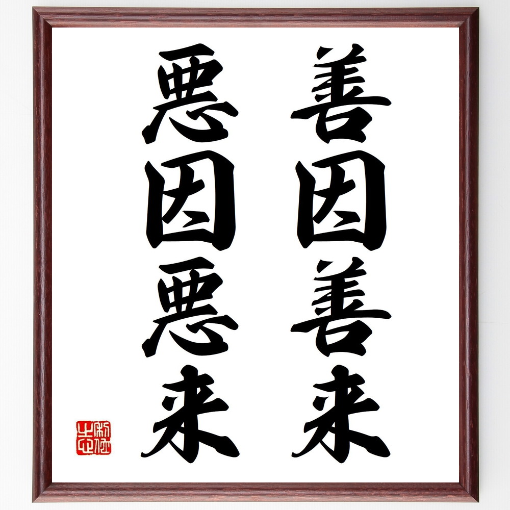 名言「善因善来、悪因悪来」手書き書道色紙額/受注後の毛筆直筆