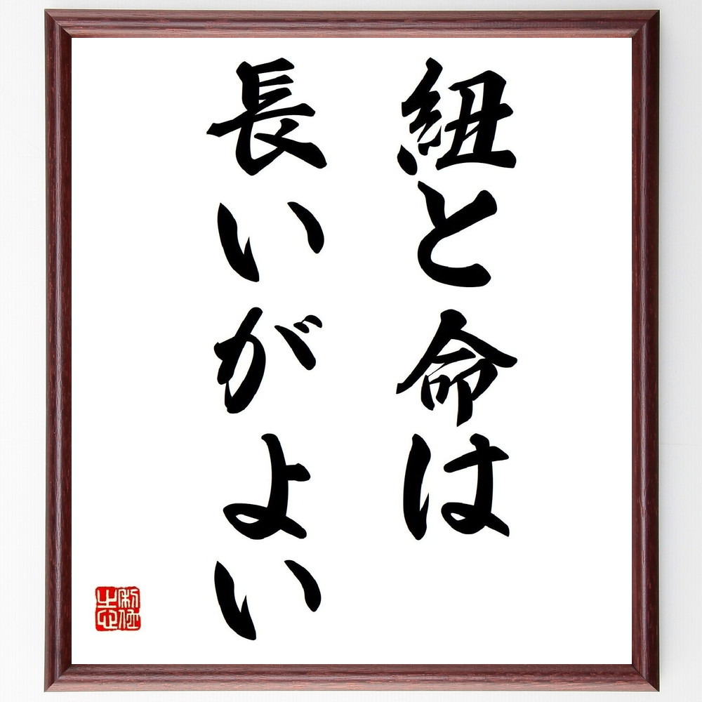 名言「紐と命は長いがよい」手書き書道色紙額/受注後の毛筆直筆