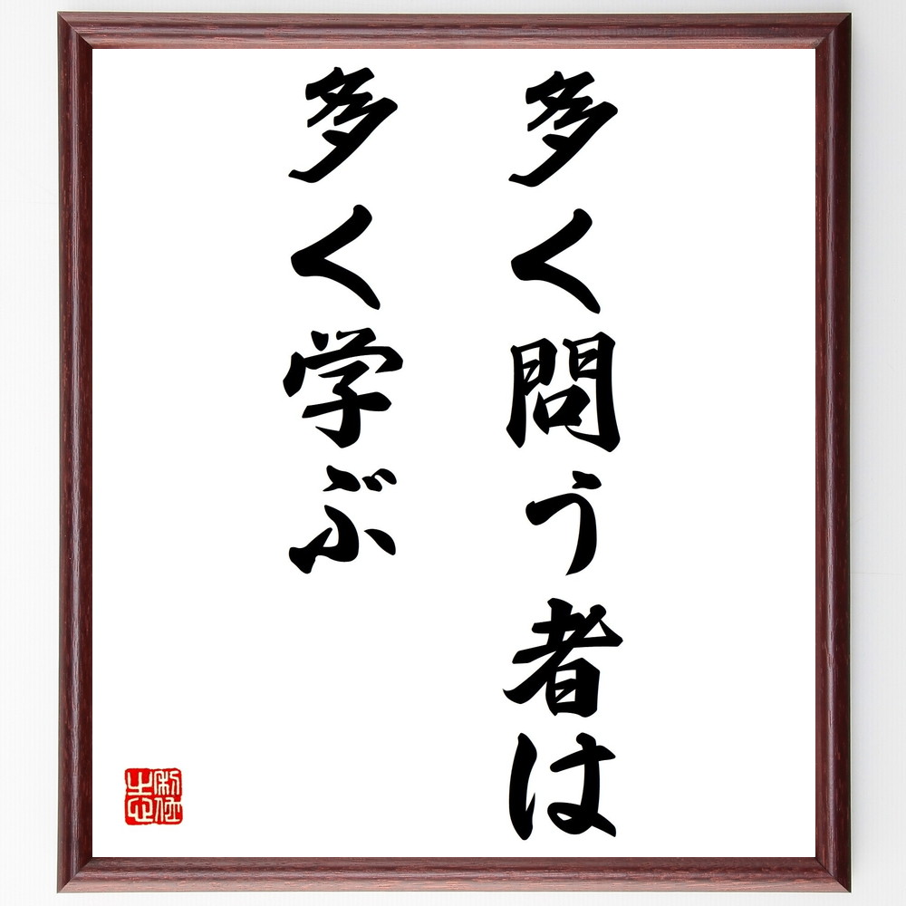 名言「多く問う者は、多く学ぶ」手書き書道色紙額/受注後の毛筆直筆