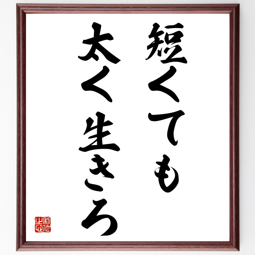 名言「短くても太く生きろ」手書き書道色紙額/受注後の毛筆直筆