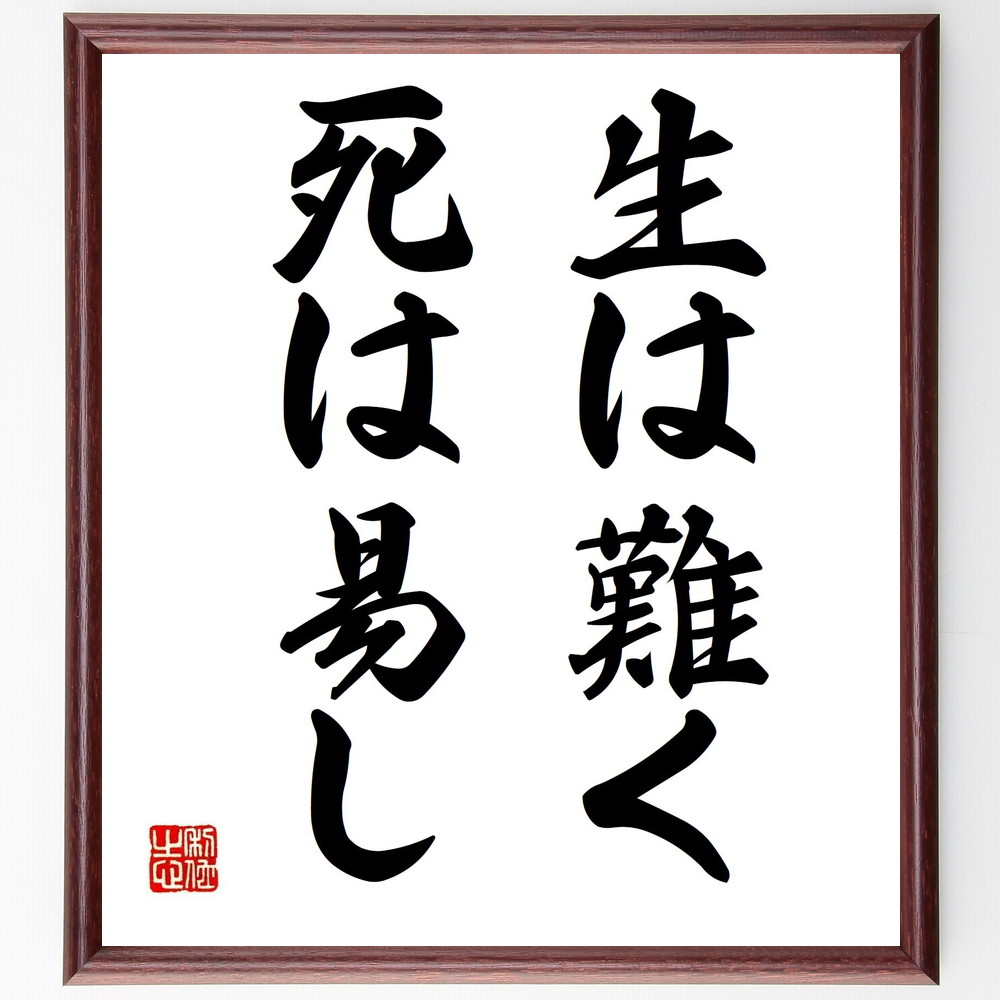 名言「生は難く死は易し」手書き書道色紙額/受注後の毛筆直筆